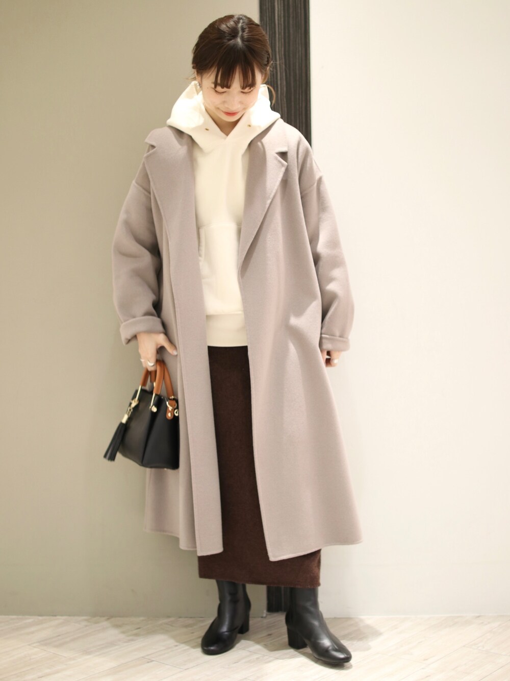 チェスターコート×フードスウェットの組み合わせ、個人的にすごく好き💡 きれいめカジュアル好きな方是非☺️ このアウターは身幅にたっぷり余裕を持たせてるので、これくらいボリュームあるスウェットも余裕で着込めます☺️ Instagram @anzu_amesoda