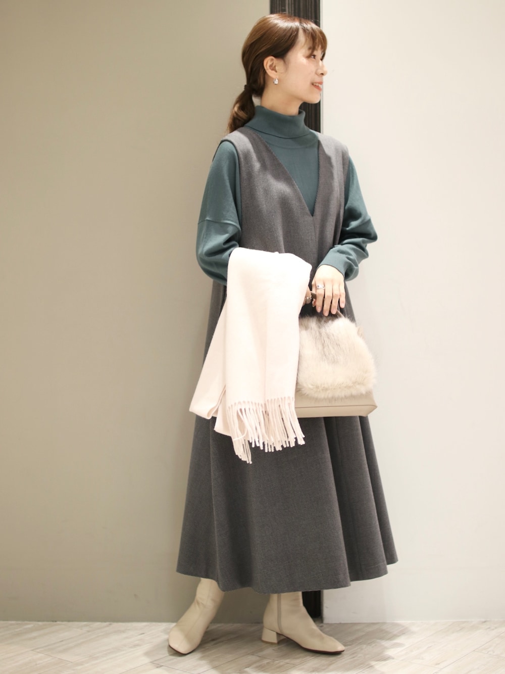 anzu(SMELLY)のワンピース「Aラインジャンパースカート」を使ったコーディネート