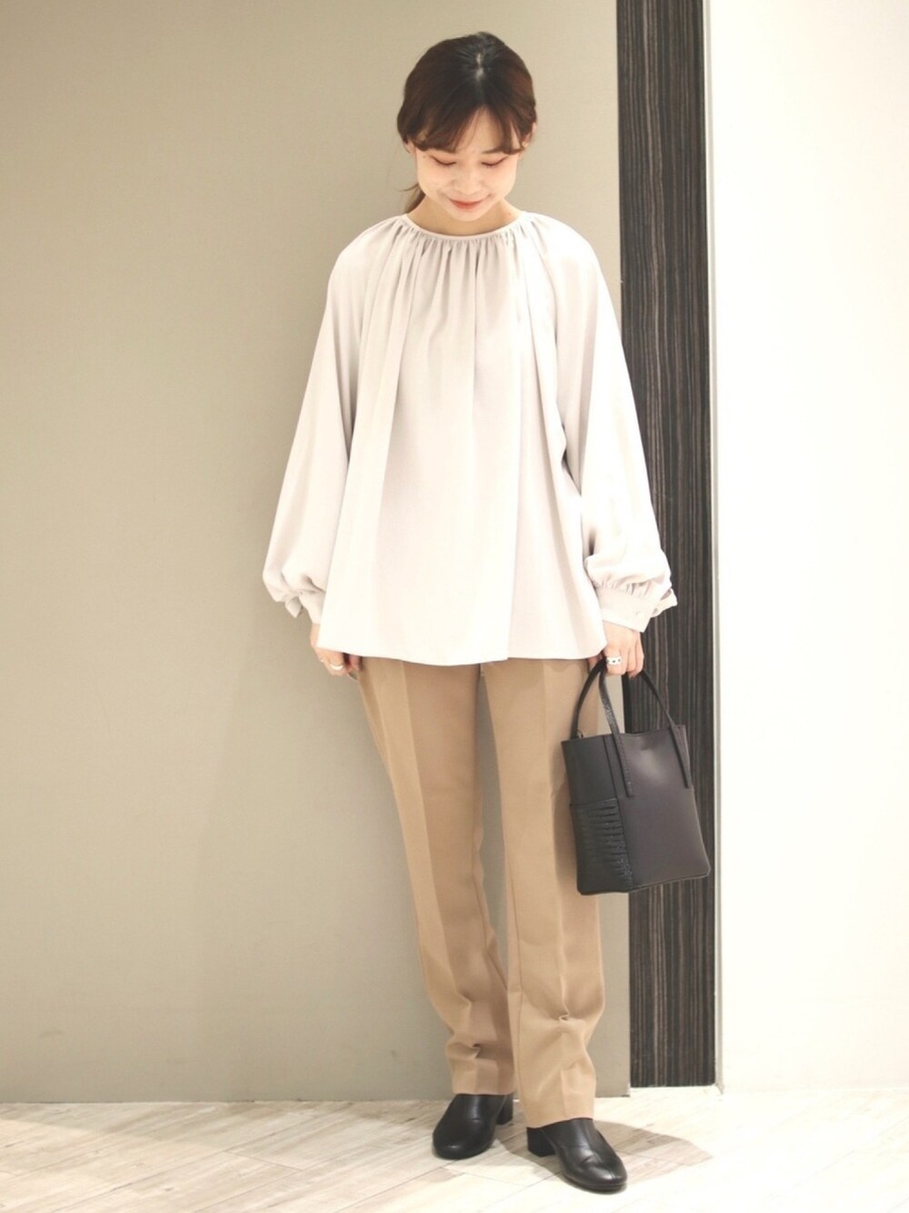anzu(SMELLY)のシャツ/ブラウス「とろみツイルギャザーブラウス」を使ったコーディネート