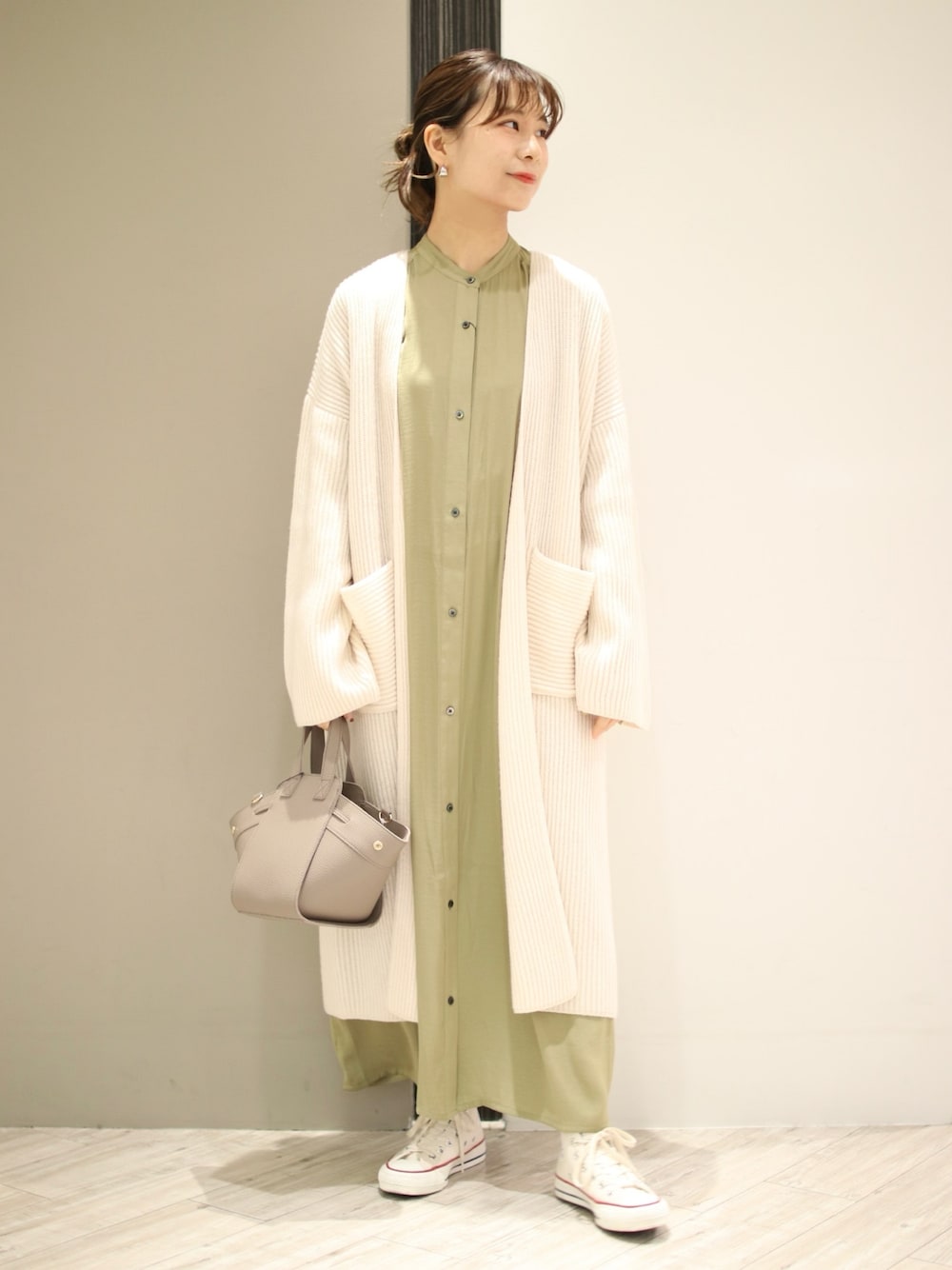 私自身も入荷を楽しみに待っていたワンピース👗 ツヤっとしていて落ち感のある素材は エレガントな雰囲気で春らしさたっぷりです◎ 絶妙なくすみカラーも気に入りました🤤 Instagram @anzu_amesoda