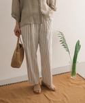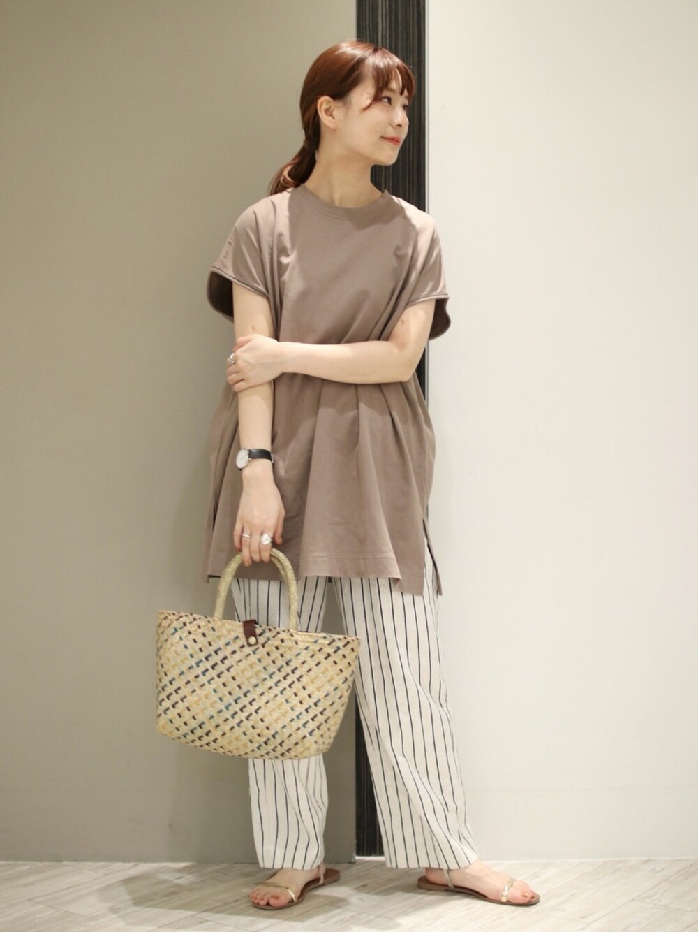 ゆったりリラックススタイル! ワイドシルエットのトップスは腕周りもストレスフリーな楽ちんな着心地が夏に重宝しそうです!◎ ボトムは細いストライプが爽やかで夏らしい印象!こちらも履き心地はノンストレスです! Instagram ▶︎ @anzu_amesoda