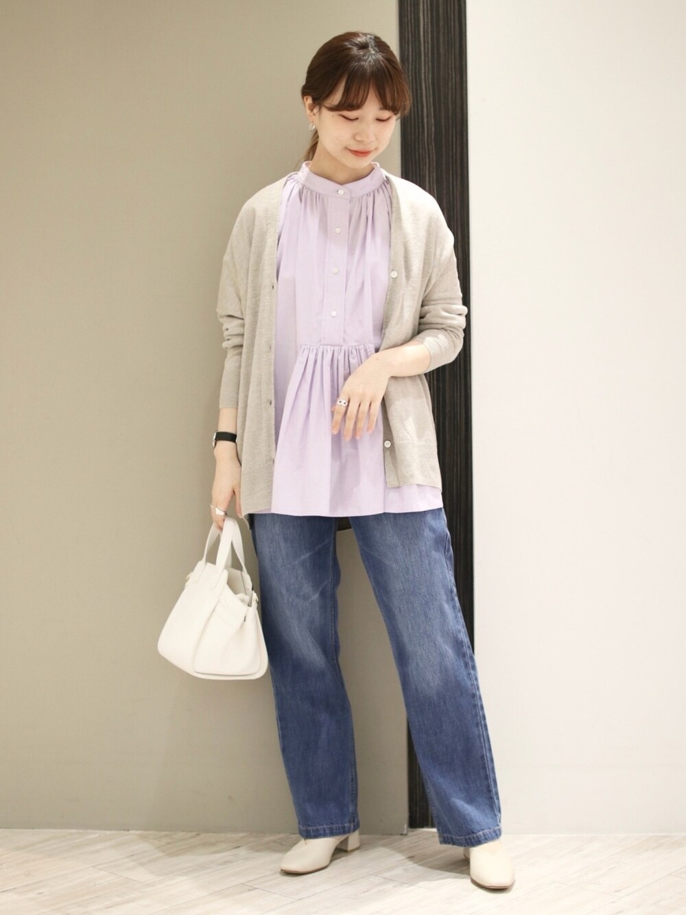 リネンのカーディガンは 少し透け感もあり夏も涼しげ。 日除けやクーラー対策としても活躍するのでひとつ持っておきたいアイテムです◎ 中にはギャザーが華やかなハリのあるブラウスで明るい印象に! Instagram ▶︎ @anzu_amesoda