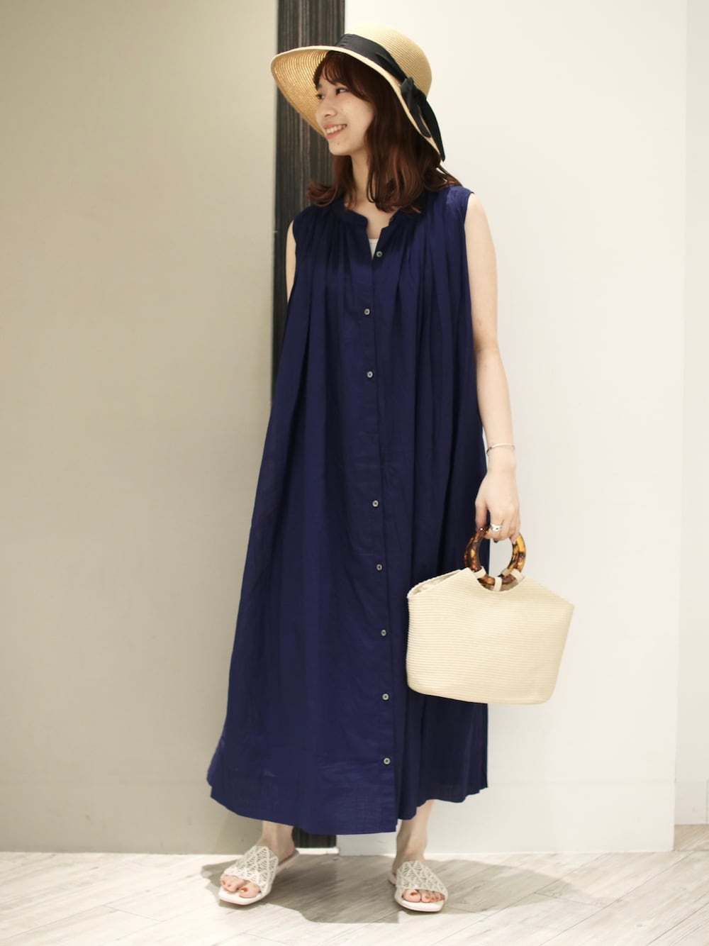 anzu(SMELLY)のワンピース「コットンボイルノースリーブワンピース」を使ったコーディネート