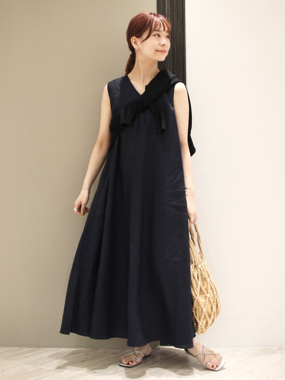 anzu(SMELLY)のワンピース「リネンノースリーブAラインワンピース」を使ったコーディネート