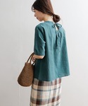 anzu(SMELLY)のTシャツ/カットソー「リネンコットンバックリボンブラウス」を使ったコーディネート