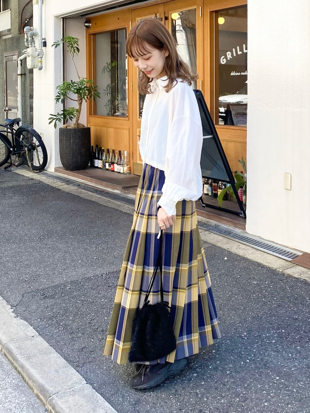anzu(SMELLY)のスカート「『WEB/一部店舗限定カラー』チェックプリーツスカート」を使ったコーディネート