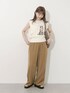 猫プリントがキュートなトップスを主役に、夏のお出かけスタイル◎ ノースリーブのカットソーですが、前後から見たときは腕が少し隠れるデザインなので 二の腕が細見えするのが嬉しいポイント! パンツはとにかくサラサラで軽い生地で涼しい! 真夏でも快適に過ごせるアイテムです。 下半身のラインを拾わずリラックスできる着用感ながらも オシャレ見えする優秀ボトム!