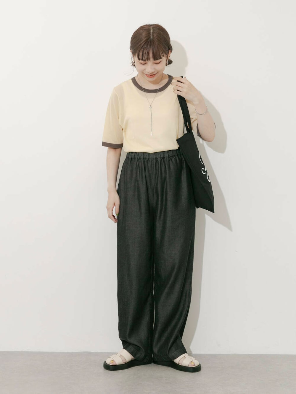 anzu(SMELLY)のネックレス「ニュアンスメタルスライドネックレス」を使ったコーディネート