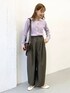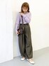 淡いパープルのニットがお気に入りのアイテムです◎ スッキリとしたシルエットながらも、 ピッタリしすぎず、身体のラインを強調せずに着れるのが嬉しいです! きれいめにも使えるアイテムですが ゆったりとしたボトムと合わせてカジュアルMIXに! 裾をギュッと絞れるデザインなので 立体的なシルエットがかわいいパンツです!