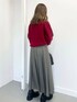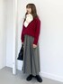 毎年、冬になるとなぜか赤のニットが気になります・・・! シンプルで飽きの来ないベーシックなシルエットのニットなので どんなボトムともバランスよく合わせることができます。 今回はプリーツスカートを合わせて落ち着いた雰囲気の 大人カジュアルスタイルに! マフラーは、もこもことした質感が可愛いアイテム! ほどよいボリューム感で、使い勝手も抜群です◎