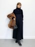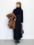 ブラックのワントーンコーデにアウターで差し色を加えた大人カジュアルスタイル! インナーに合わせているリブニットは私のイチオシアイテム! とてもよく伸びる素材で、スッキリ見えるのに締め付け感の少ない着用感が快適です! ピチピチになりすぎないので1枚でも上品な雰囲気なのも◎! アウターはお尻がしっかり隠れるミドル丈なので タイトなボトムとも相性がいいですよ^^