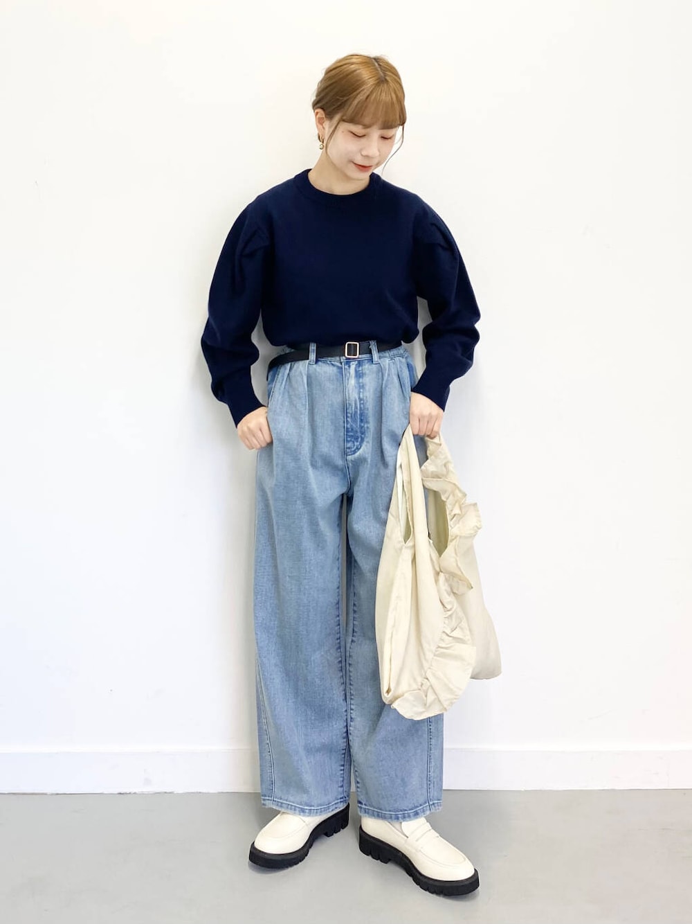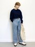 今から春までOKなスタイリングです! ニットは非ウール素材なので春や秋のシーズンにも活躍します! ちくちくしない肌触りなので敏感肌さんにも安心です! デニムは広がりすぎないワイドシルエット。 タックが入っているので腰回りや下っ腹が強調されないのも 個人的にうれしいポイントです◎