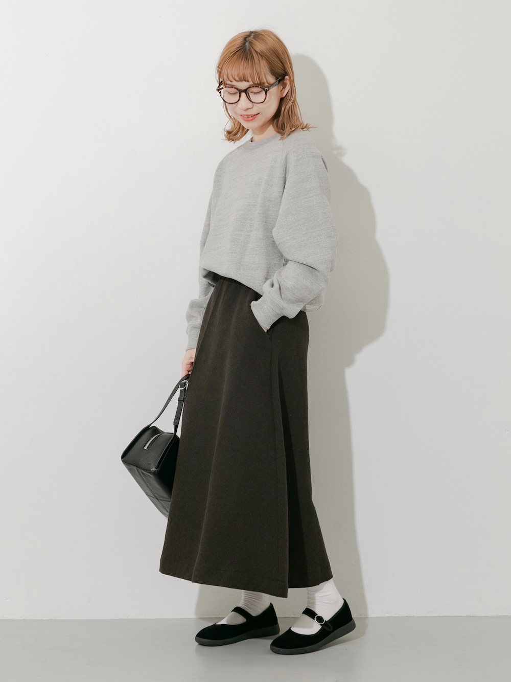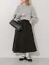 スウェットを品のある雰囲気で着るのが今の気分です! 合わせたのは形が綺麗で上品に決まるフレアスカート。 腰回りはすっきり、裾にかけて程よい広がりがあり、甘すぎない大人の雰囲気が◎
