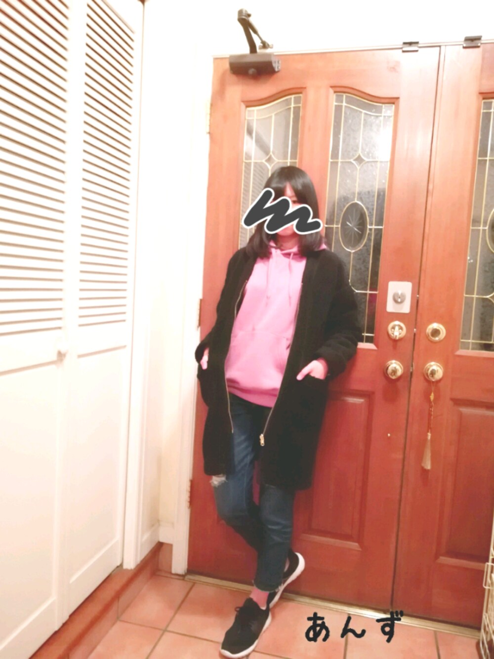 GUメインの冬コーディネート🎵 メンズのパーカーで合わせてみました! よかったらフォロー、保存などお願いします‼️