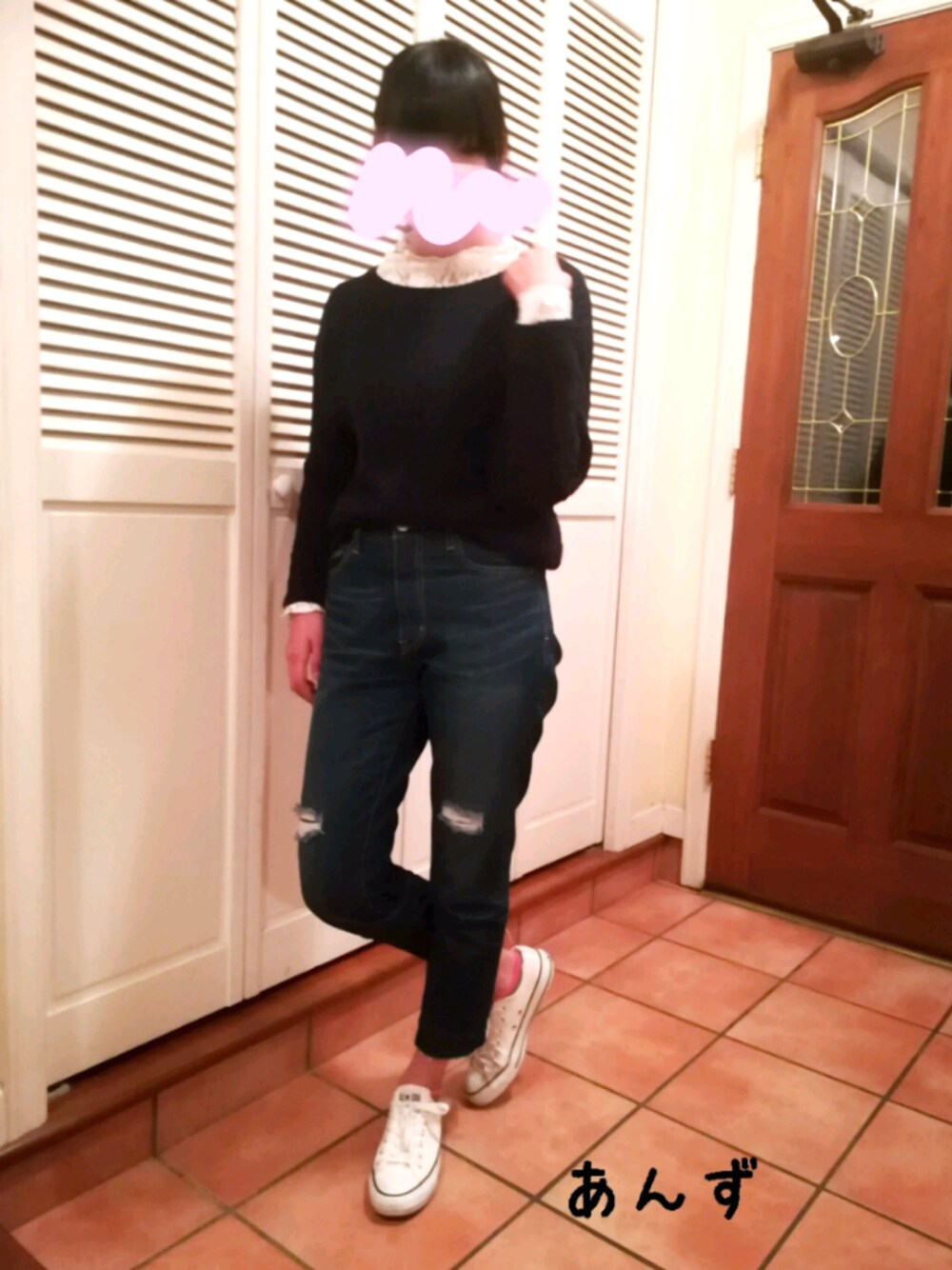 今日も寒い🌁 レースのフリルネックがかわいいシンプルなコーディネートです! よかったら❤️、お気に入り登録、フォロー、コメント等お待ちしています🙏