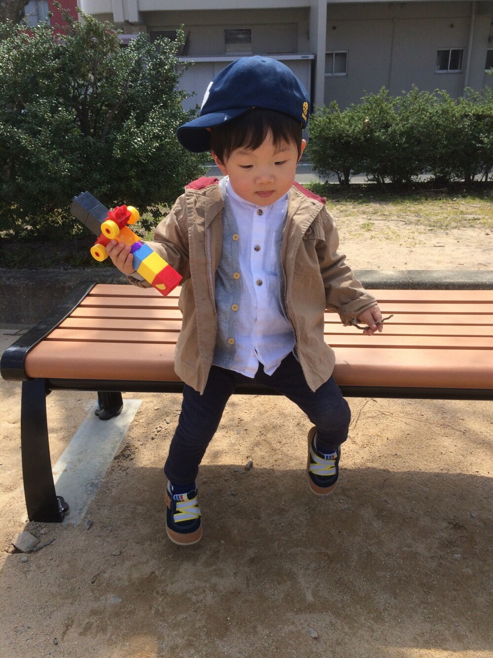 公園。 石ころと枝があればいくらでも遊ぶ。 もちろん片手にはバイキンマン☆