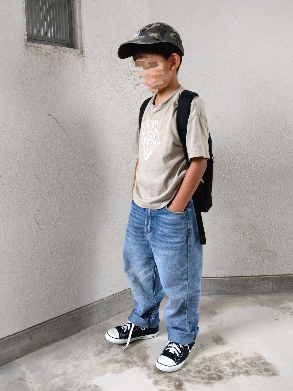 いつコ デニム形も色合いも古着っぽくて めっちゃ好き| ‹:)~❁ 足とかゆるゆるなのに お腹ぱつぱつで苦しい息子。。( °д◦)エ 4月の身体測定 124cm 26.2kg