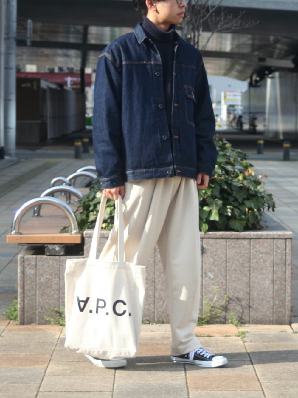 ご覧いただきありがとうございます😊 いいねやフォルダイン、フォローもとても嬉しいです😭 最近急に寒くなったり暑くなったりしてるので 皆さん体調管理に気をつけて過ごしていきましょうっ💪 今日はUNIQLOの 「スウェットギャザーパンツ」を使ったコーディネートです! 楽さがありつつシルエットもとてもキレイ✨ デニムジャケット+タートルネックを合わせて キレイめカジュアルなコーディネートにしました◎ 今回はCONVERSEを合わせたのですが、 New Balanceなどのスニーカーも合わせてみたい、、! 最近自分の投稿を見返していて思ったんですけど、A.P.Cのトートバッグ持ち過ぎてますよね。はい。その辺も気をつけていこうと思います。 春休みが終わって対面の授業がまた月曜日から始まるので、学業との両立も頑張っていきたいです! ちょっと親しみやすいように書こうと思ったら長々としちゃったんですけど、 ここまで読んでくれてたら嬉しいです😭 コメントも待ってます📝 ----------------------------------------- 【Activity】 Instagram ➪ wear_asahi プロフィールからも見れるので ぜひフォローなどお願いします🙇♂️ -----------------------------------------