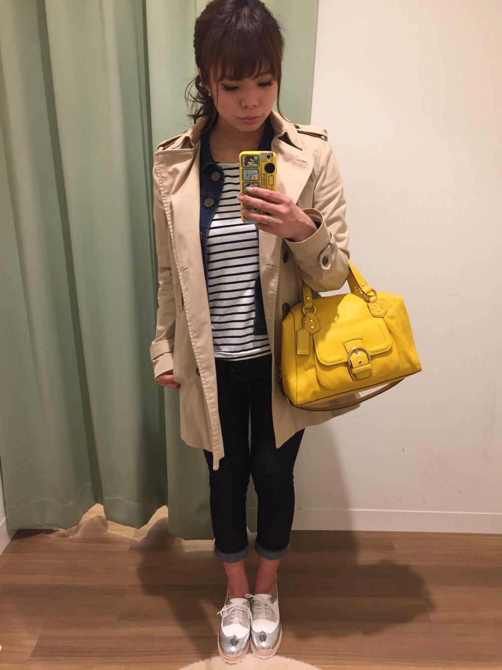 Trench Coat : zara Denim jaket : CECIL Mc BEE Tops : 古着屋 Denim : GU Bag : COACH Shoes : pool studio トレンチ × Gジャンのレイヤードcode