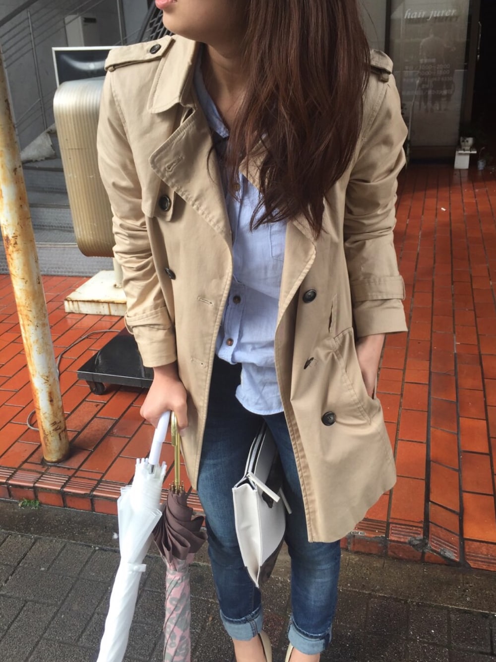 trench coat : ZARA shirt : H&M denim : ZARA pumps : R&E clutch bag : BLISS POINT 友達撮られた不意打ちshot 何でbag足に挟んでるんだろ。。。笑