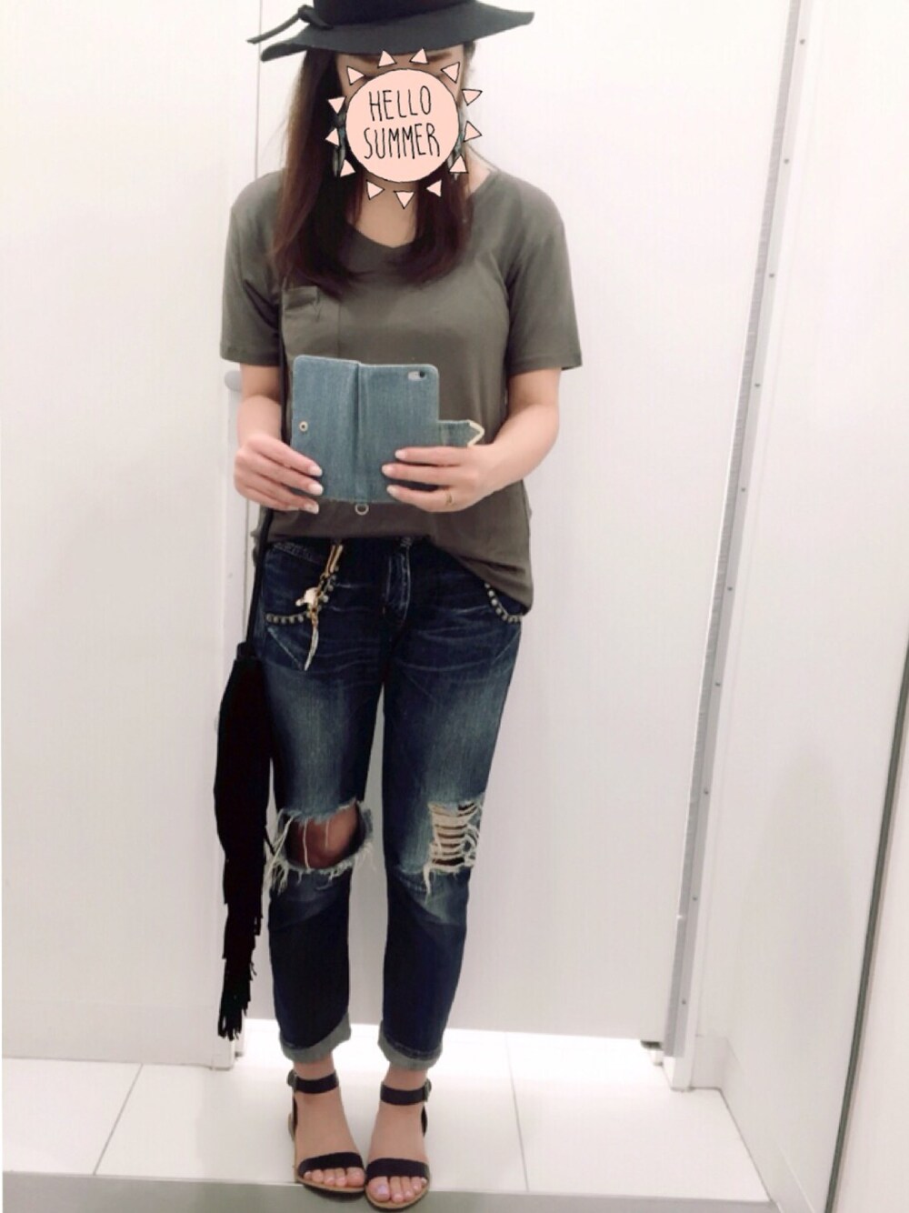 aochiiiのショルダーバッグ「フェイクスウェードフリンジコンチョBAG 564795」を使ったコーディネート
