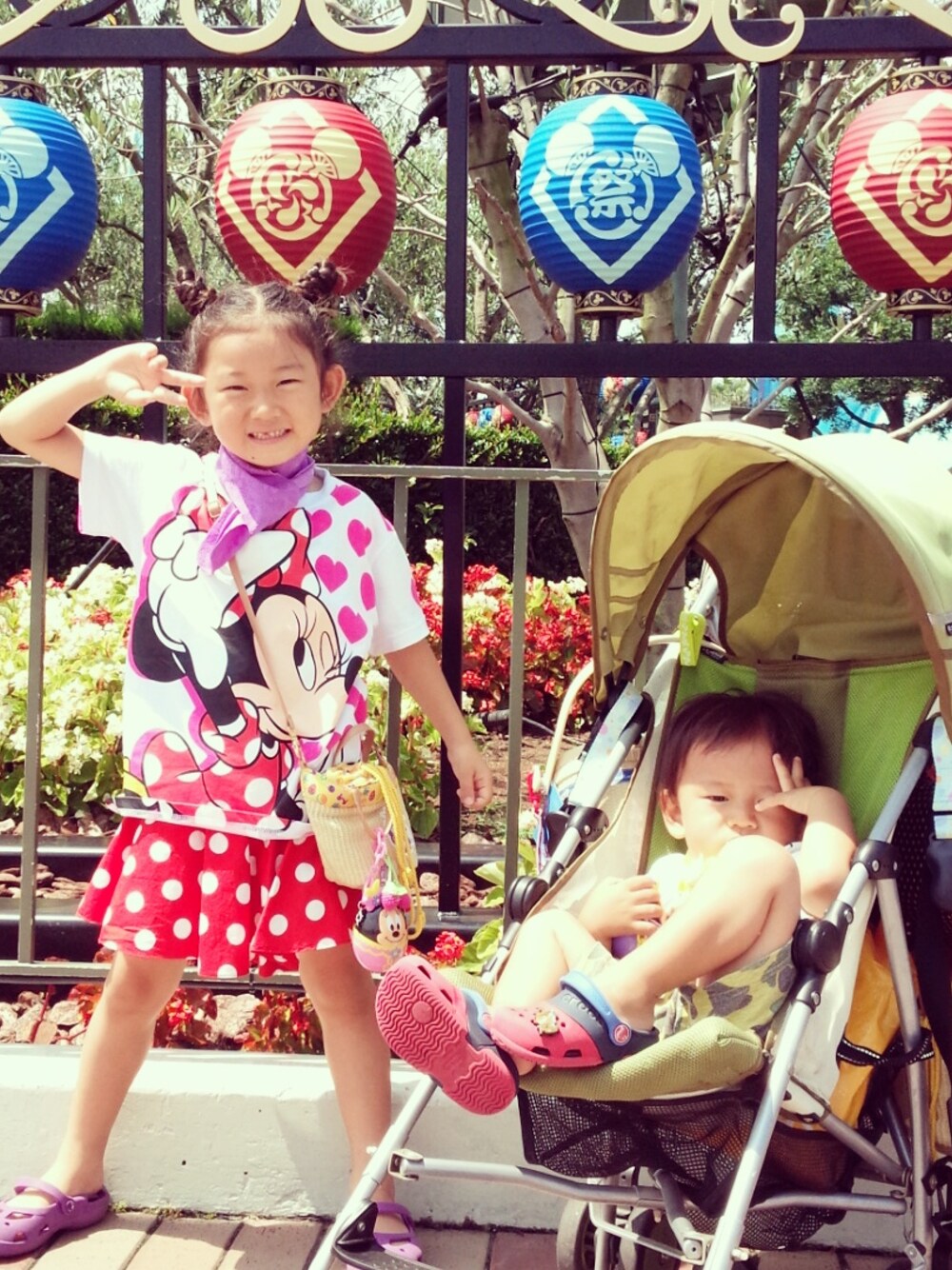 レッド系のスカート、ホワイト系のTシャツ/カットソーを着用したキッズの冬コーディネートの1枚目の写真