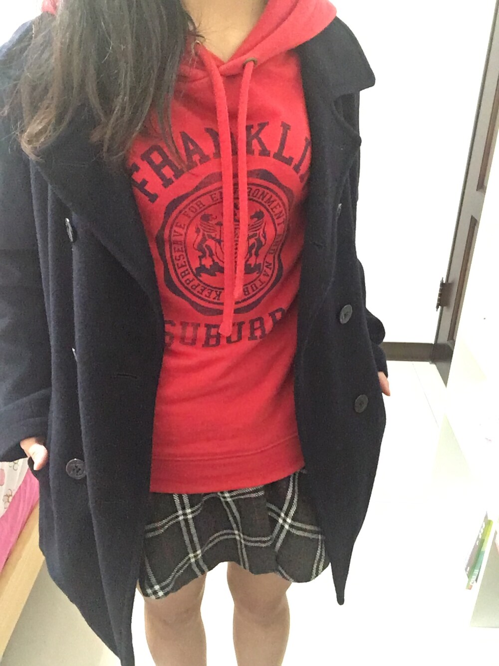 今日はとても寒いのでピーコート❄️ 大学なので中にフード付きパーカー着てカジュアルに!