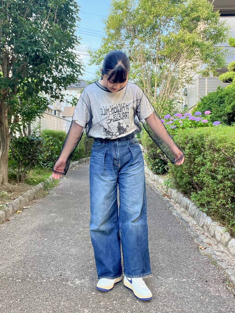 Tシャツ×ラメトップスをレイヤードして下半身は青で揃えた! たまにはストリートも着たい人です🙋🏻♀️´- Instagram:@__ao8gram