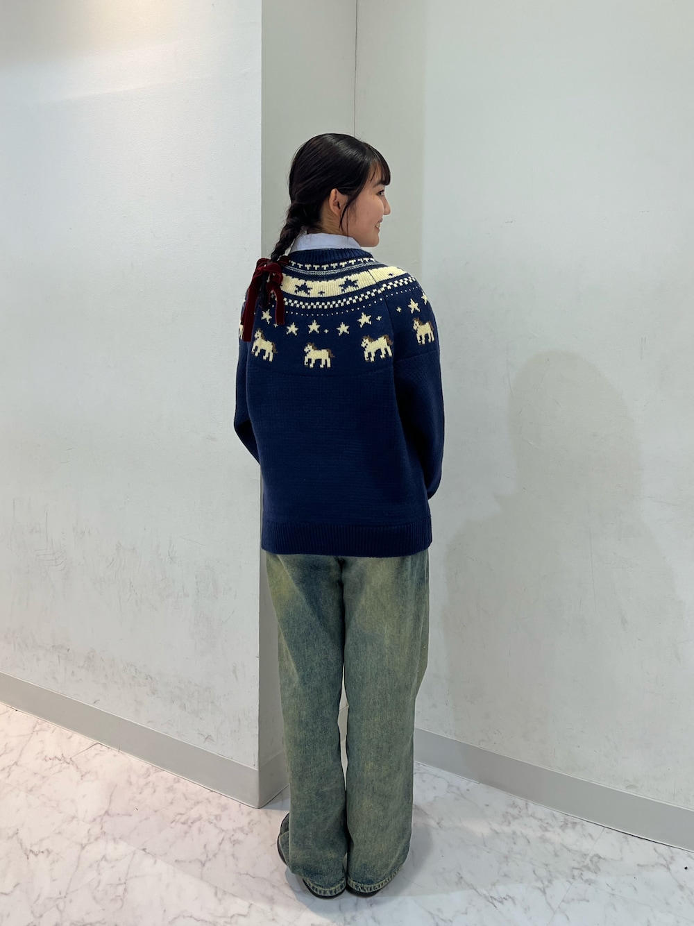 一目惚れだったニットはノルディック柄がとにかく可愛い!! シャツやデニムも青で統一感を出してみた🤫💙 Instagram:@__ao8gram