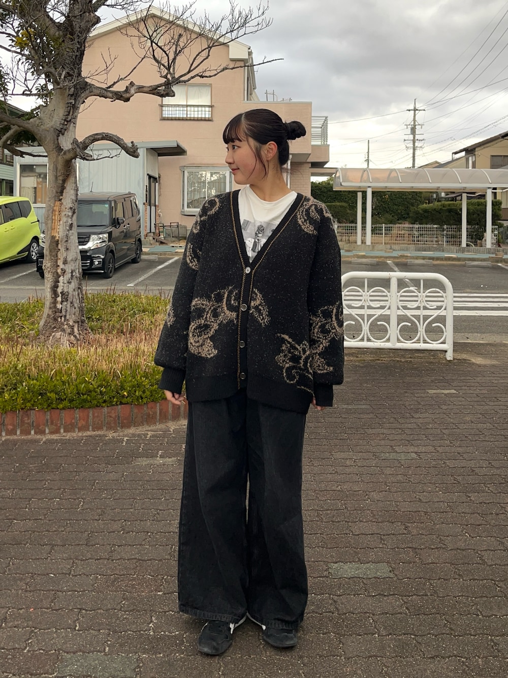 ペイズリー柄のカーディガンは着ただけでこなれ感👍🏻 安定のロンTとワイドデニム合わせでモノトーンにまとめた! Instagram:@__ao8gram