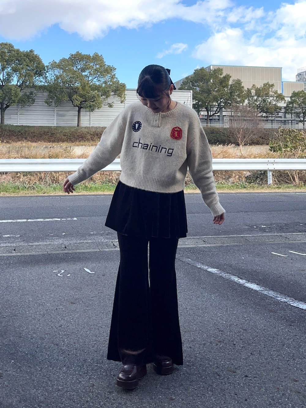 sixsenceコラボのニットはワッペンまでデザインが可愛い〜! 買ってよかったアイテムNo.1ベロアパンツと合わせた^^ Instagram:@__ao8gram