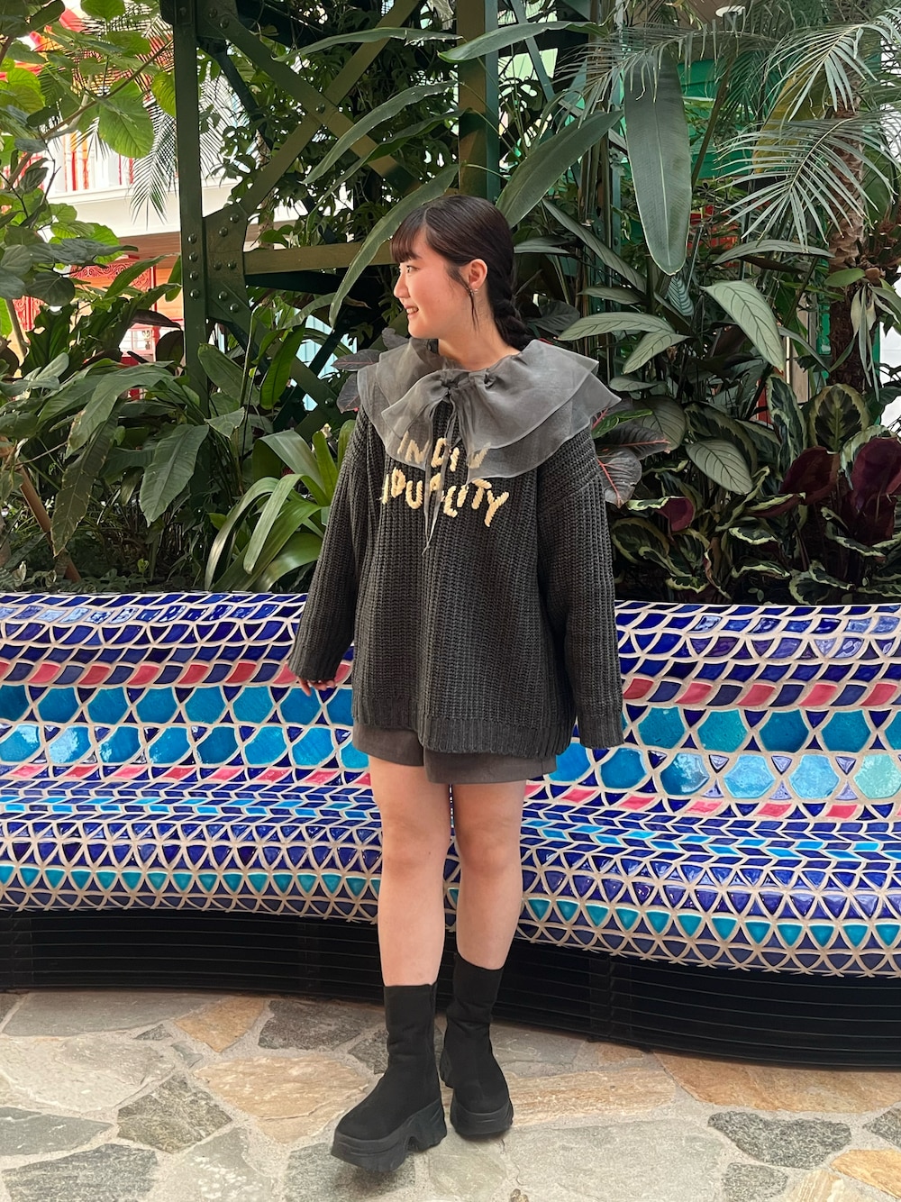 刺繍が可愛いニットは20周年限定アイテムでGET〜🧶🩶 普段着ないけどフリルで女の子らしさUPさせたのがポイント! Instagram:@__ao8gram