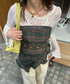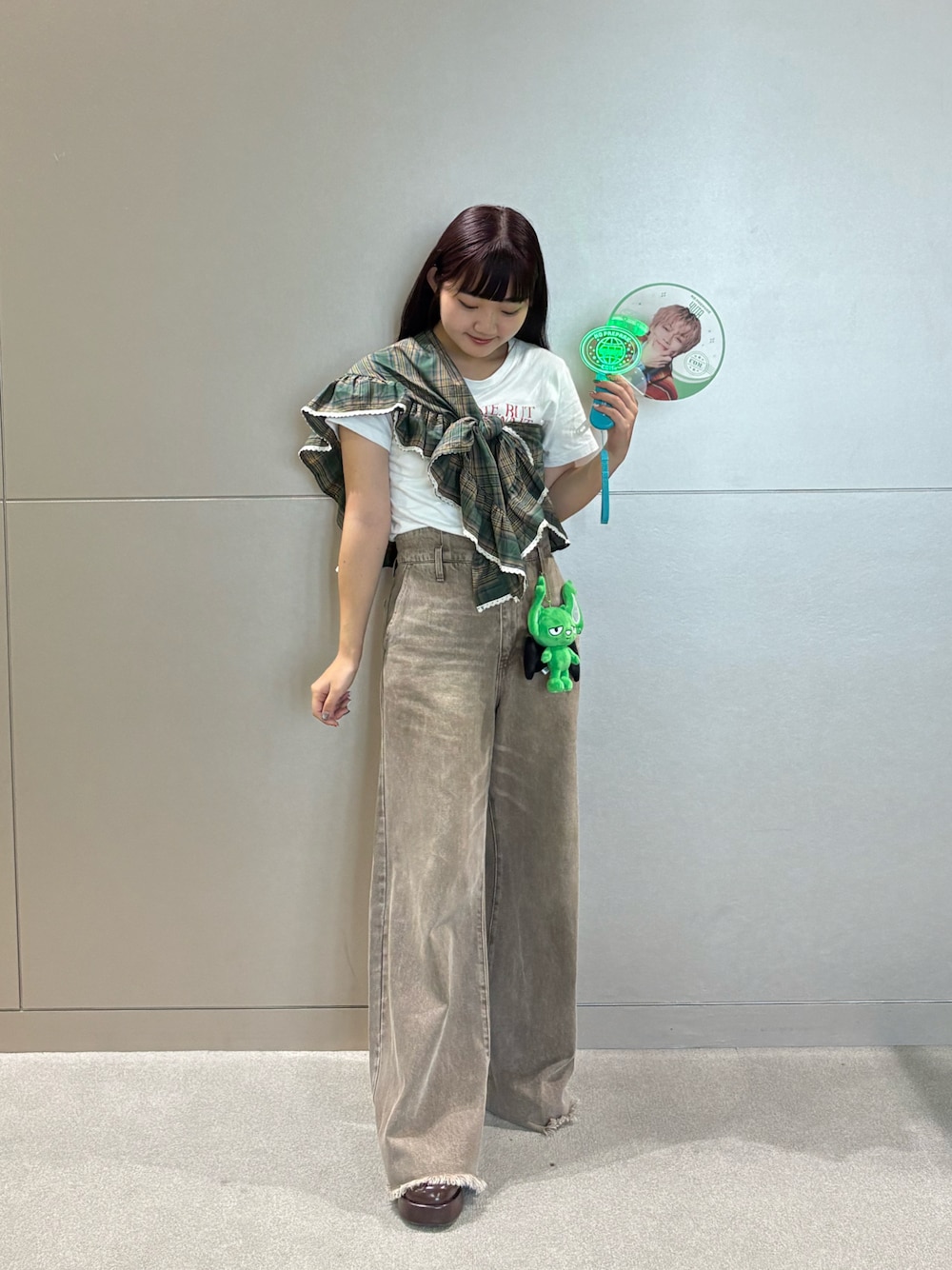 推しがグリーンってことでチェックのスカーフと 相性の良いブラウンデニムで秋らしさを^ ^ @__aoooha