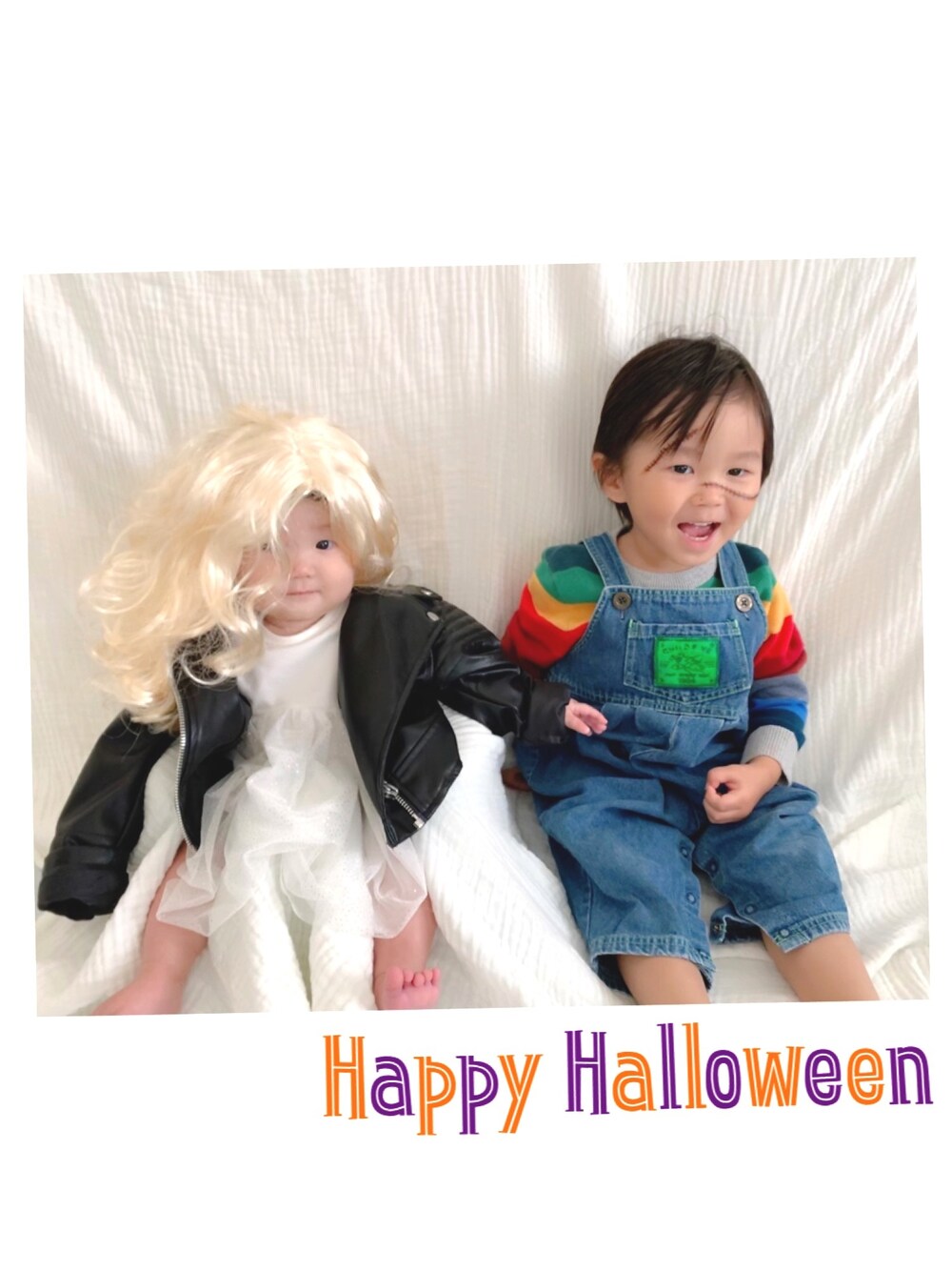 𝙷𝚊𝚙𝚙𝚢 𝙷𝚊𝚕𝚕𝚘𝚠𝚎𝚎𝚗🎃👻😈 チャッキー&ティファニー 2歳の息子と生後7ヶ月の娘 娘はサイズがなくて いろいろとぶかぶかでしたが それでも可愛かったです👻❤️