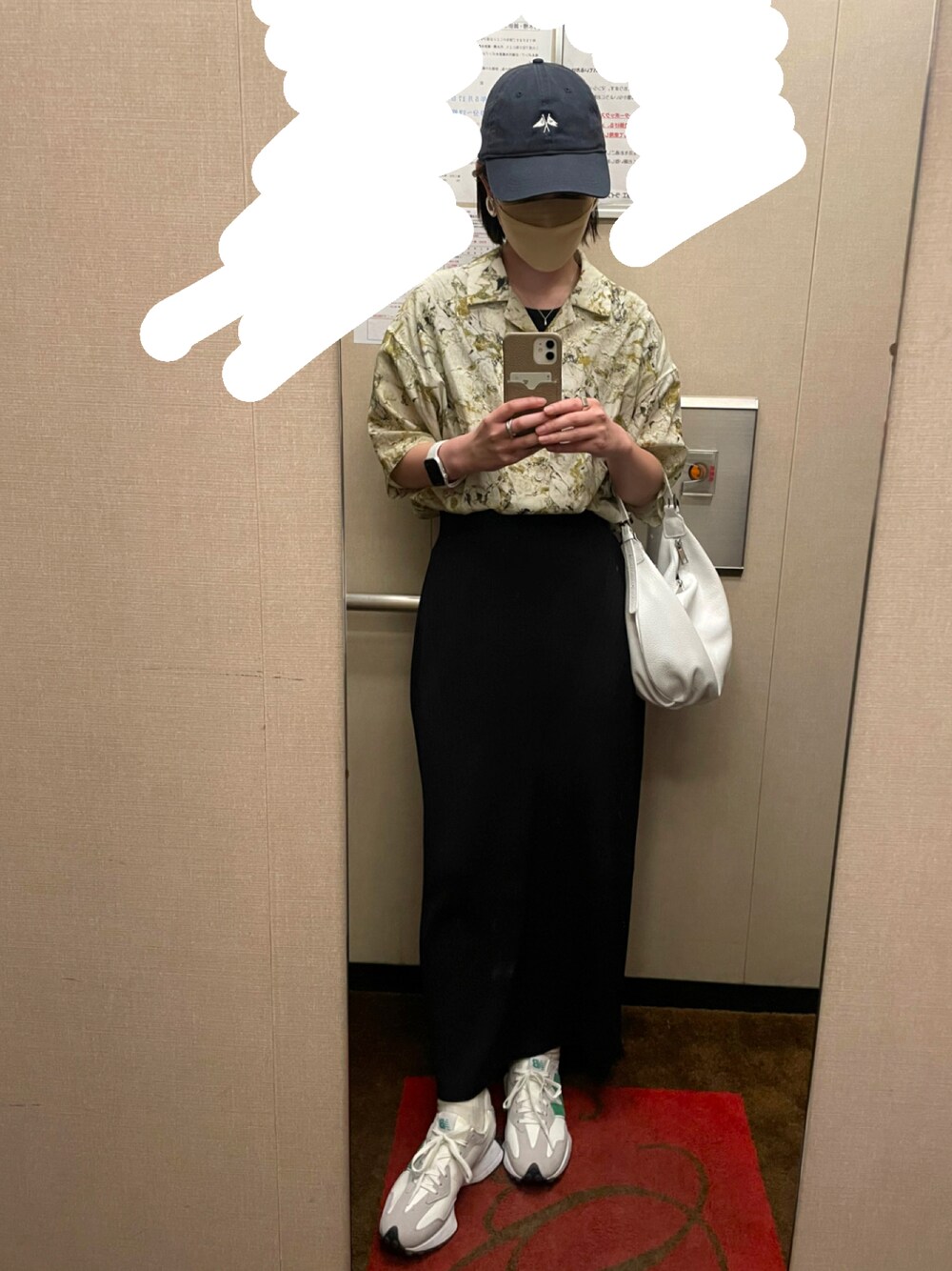 マメクロのスカートは159センチでLサイズの丈感が可愛い!😙 キャップは黒とネイビーの間くらい(ダークグレイ)だと重たくなりすぎず、モードにもカジュアルにも合わせられて良き👍
