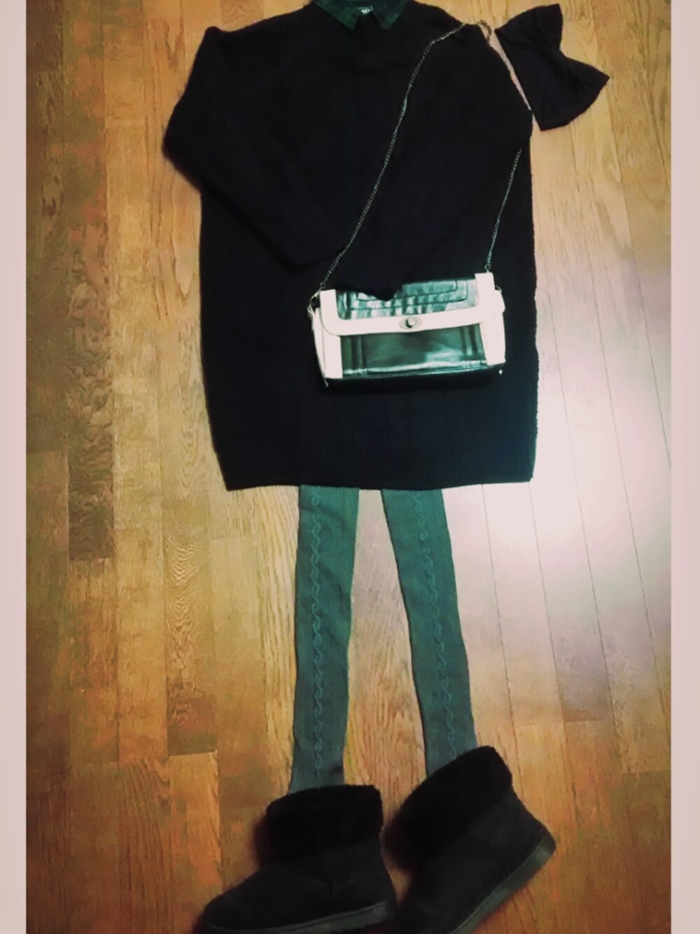 GUで一目惚れしたニット、黒く見えるけど紺です。ネイビー。 紺色が好きでよく買うので、旦那にまた紺色?と言われてしまいました(´ε`;) カーキのケーブルニットと迷いました~♡ また次の機会に… バックはかなり昔に買ったものです。お気に入りなのですが、ちょっとガタがきております(笑) お越しいただきありがとうございました(ㅅ´³`)♡