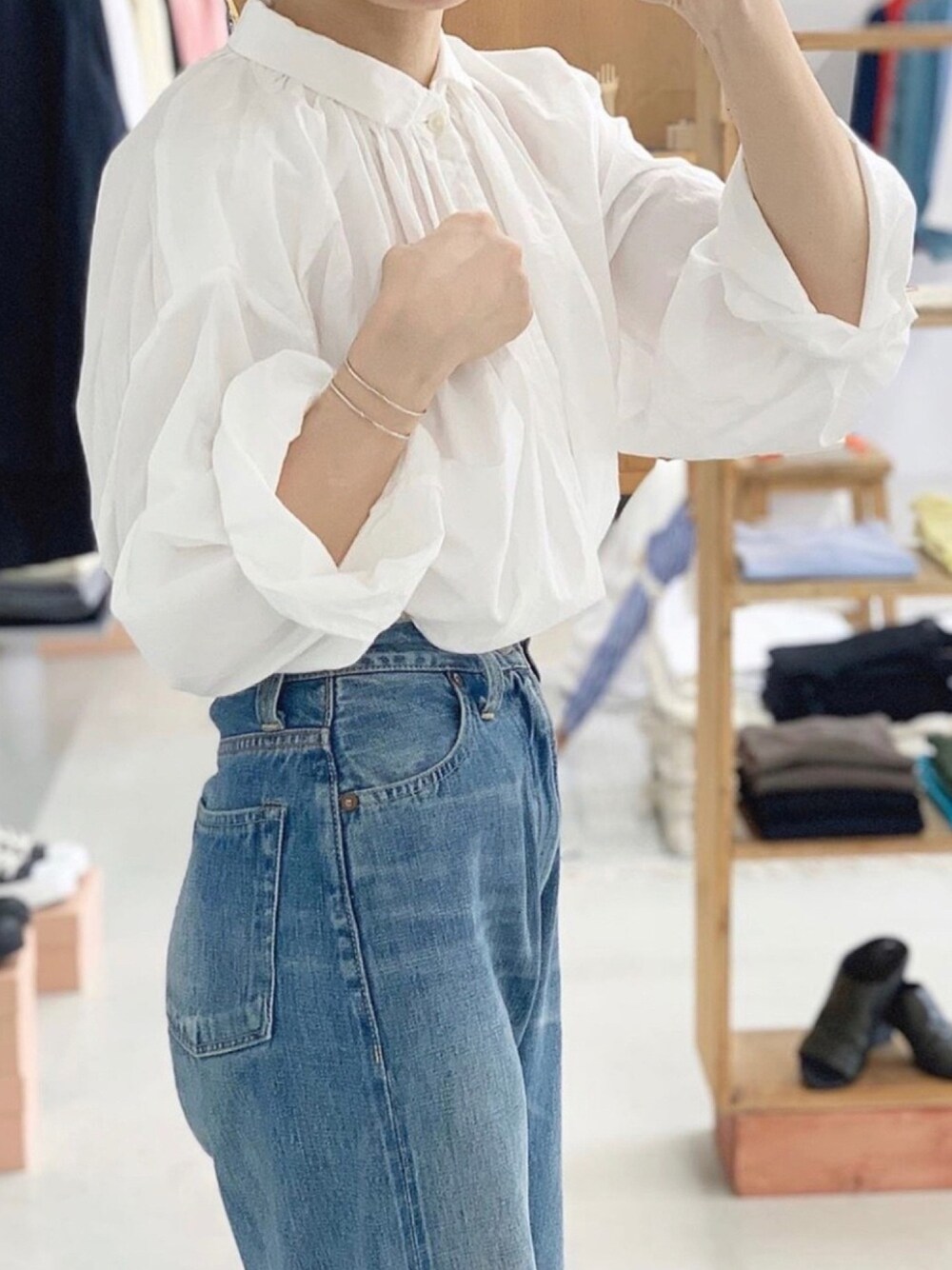 ギャザーブラウスは インして着るのも好き ︎︎☺︎