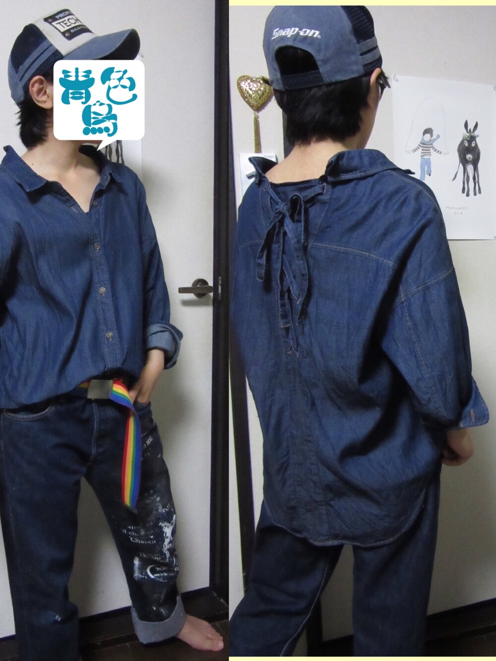 あおいろからすのシャツ/ブラウス「・バックレースアップBIGシャツ ○」を使ったコーディネート