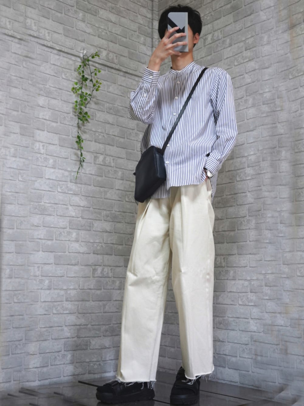 ストライプシャツに白パンツでクリーンなコーデ👔