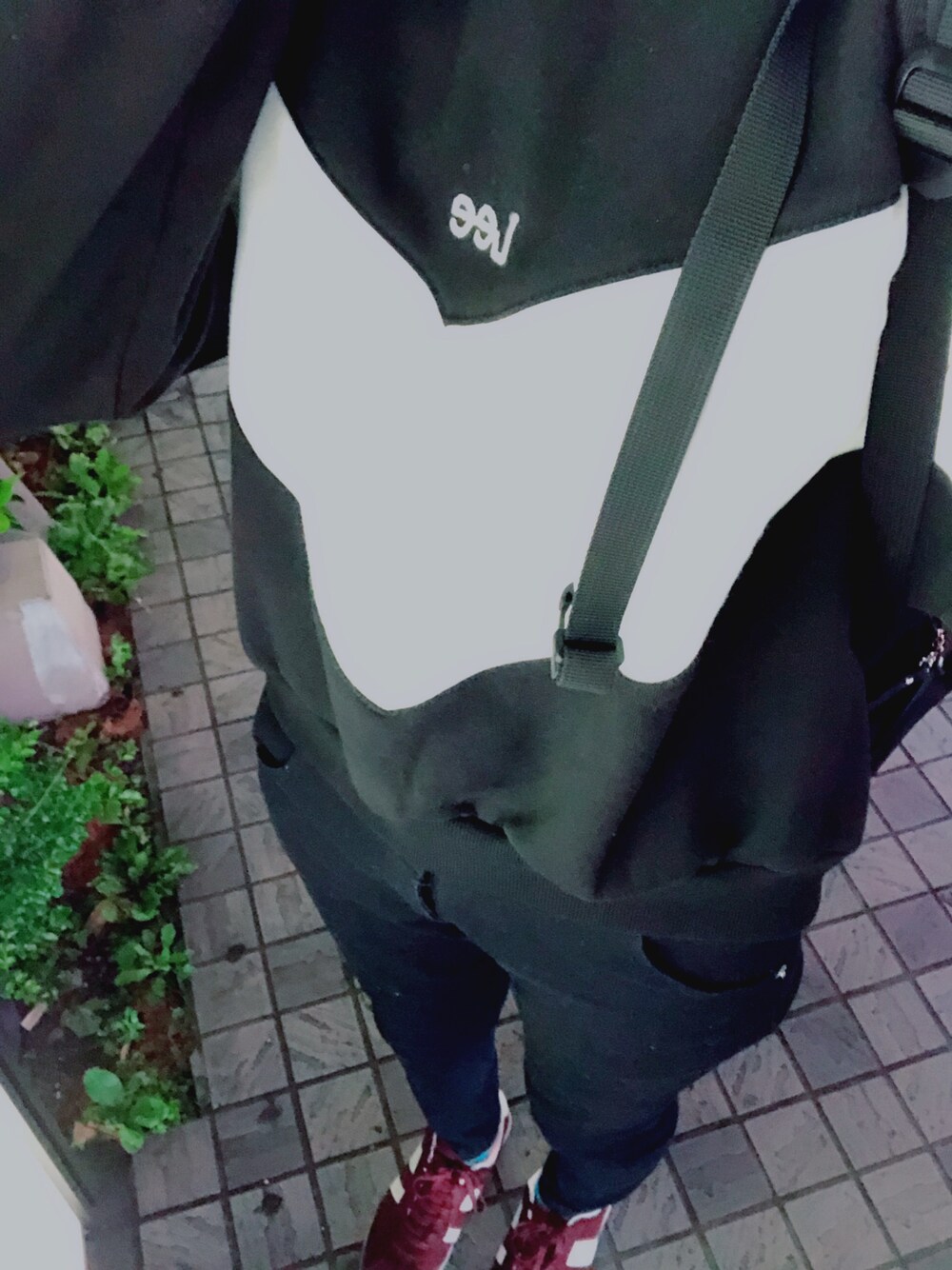 今回のコーデはLeeのトレーナー似合わせてコーデしてみました😊 いつもは黒のスニーカーですが全身黒になってしまうのでえんじ色のスニーカーでアクセントをつけてみました
