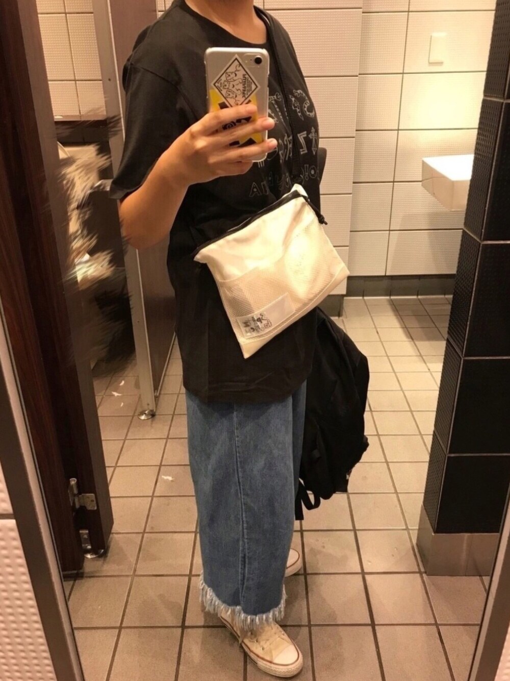 スピッツのFCライブだったんだけど 買ったサコッシュと履いてったコンバースが偶然オフホワイト合わせになってうれしかったー! (めっちゃトイレでごめんなさい)
