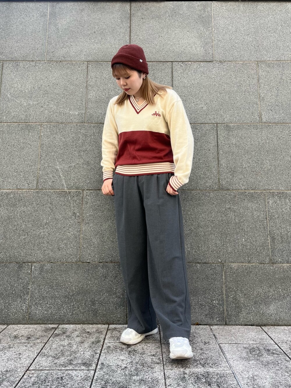 トップスのニットとニット帽の色味がお気に入りです🍁 シンプルなニット帽はお洋服選ばず合わせやすいです!⭐︎