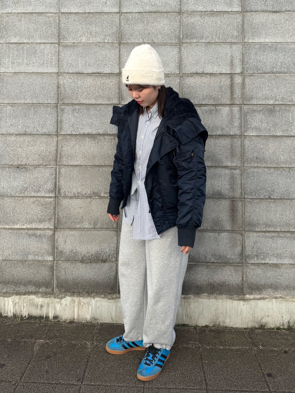 aoi(OVERRIDE 舞浜 イクスピアリ)のニットキャップ/ビーニー「KANGOL FURGORA CUFF BEANIE」を使ったコーディネート
