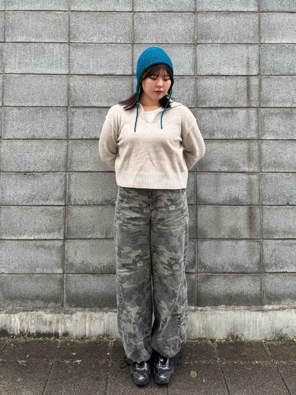 aoi(OVERRIDE 舞浜 イクスピアリ)のニットキャップ/ビーニー「OVERRIDE ALPACA BLEND EARLAP BEANIE / オーバーライド」を使ったコーディネート