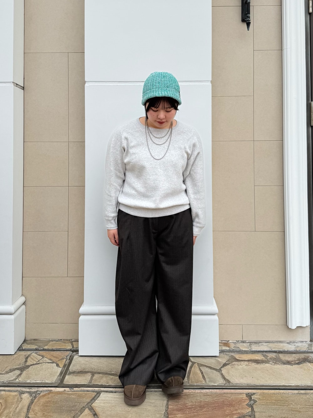 春ニット🌸 軽くて使いやすいアイテムです! シンプルなコーディネートに鮮やかなグリーンをプラスしました!