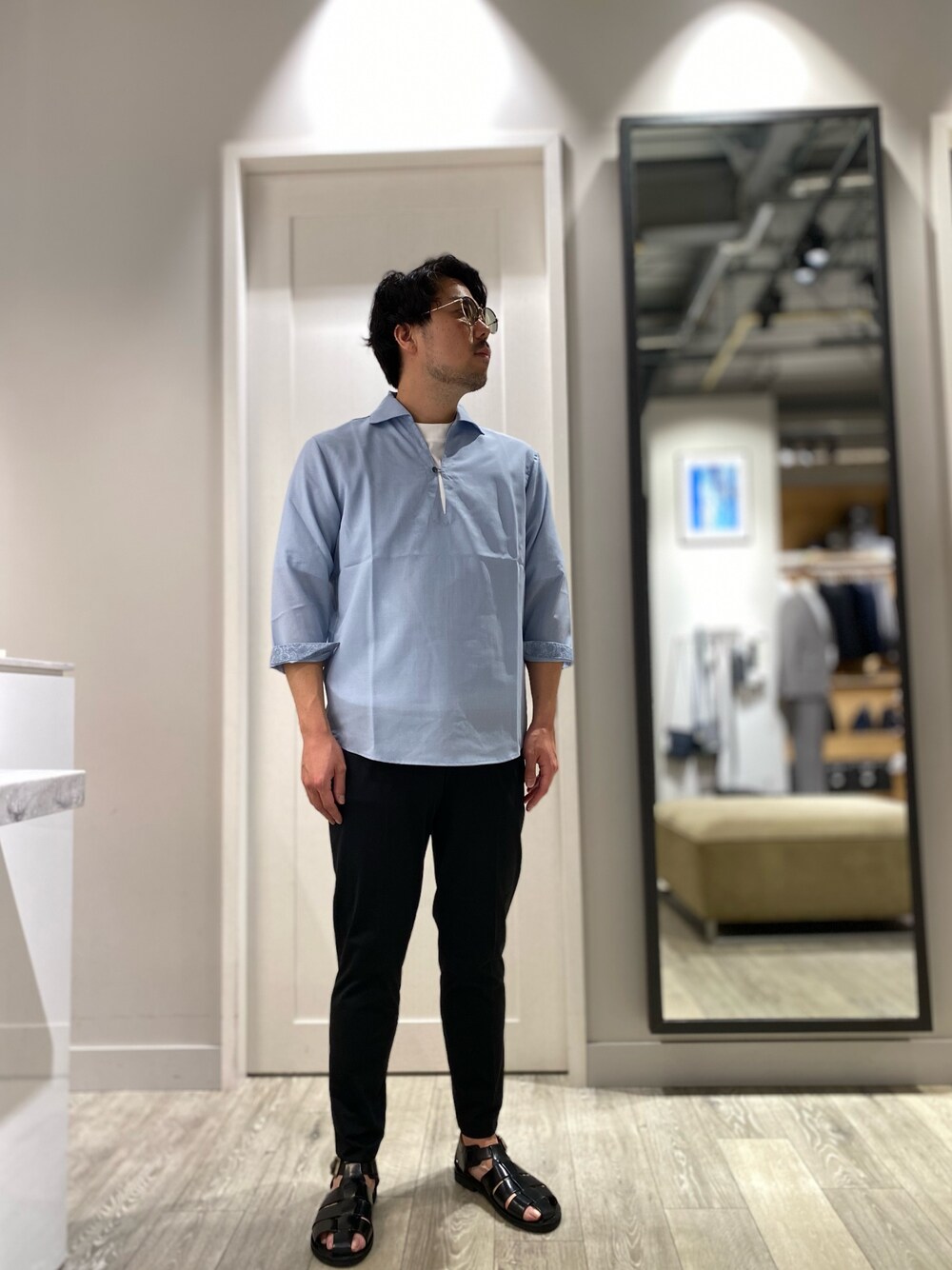 ao(アバハウス 佐野プレミアムアウトレット店(MEN'S))のシャツ/ブラウス「【リネンタッチ】7分袖 カプリシャツ / スキッパーシャツ」を使ったコーディネート