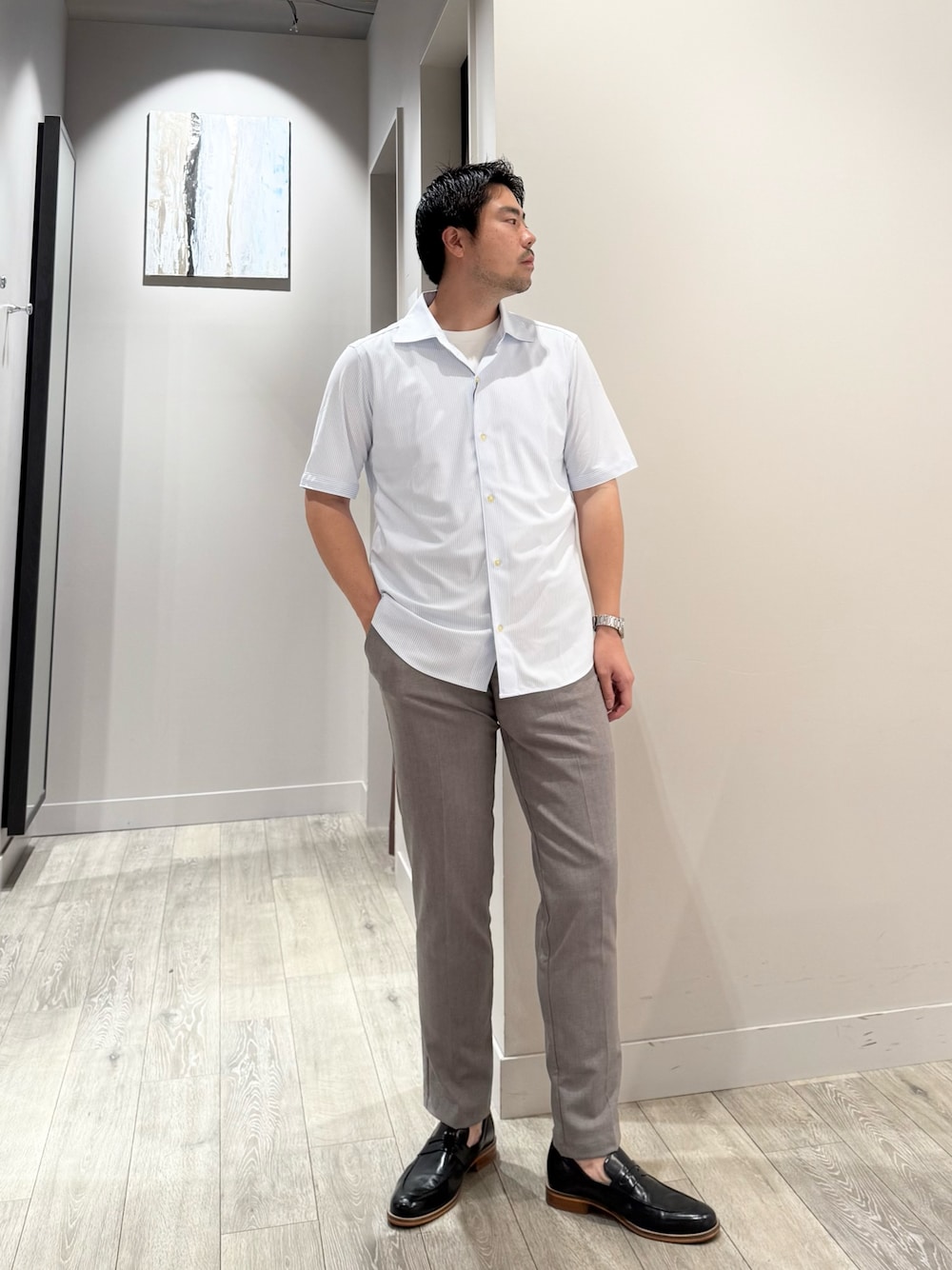 ao(アバハウス 佐野プレミアムアウトレット店(MEN'S))のシャツ/ブラウス「【速乾性】ワンピースワイドカラー 半袖シャツ」を使ったコーディネート