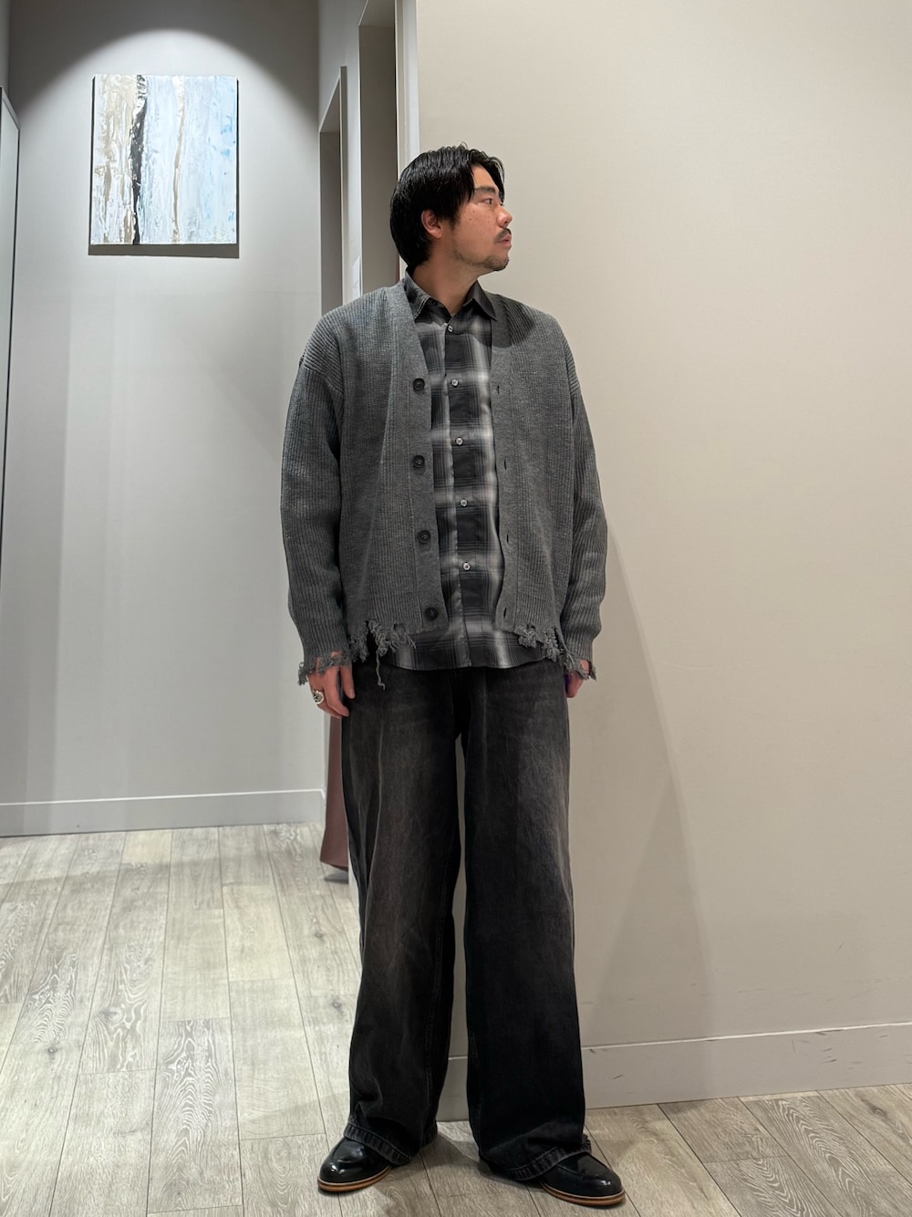 ao(アバハウス 佐野プレミアムアウトレット店(MEN'S))のカーディガン/ボレロ「【AH ABAHOUSE】畦編み ダメージニットカーディガン」を使ったコーディネート