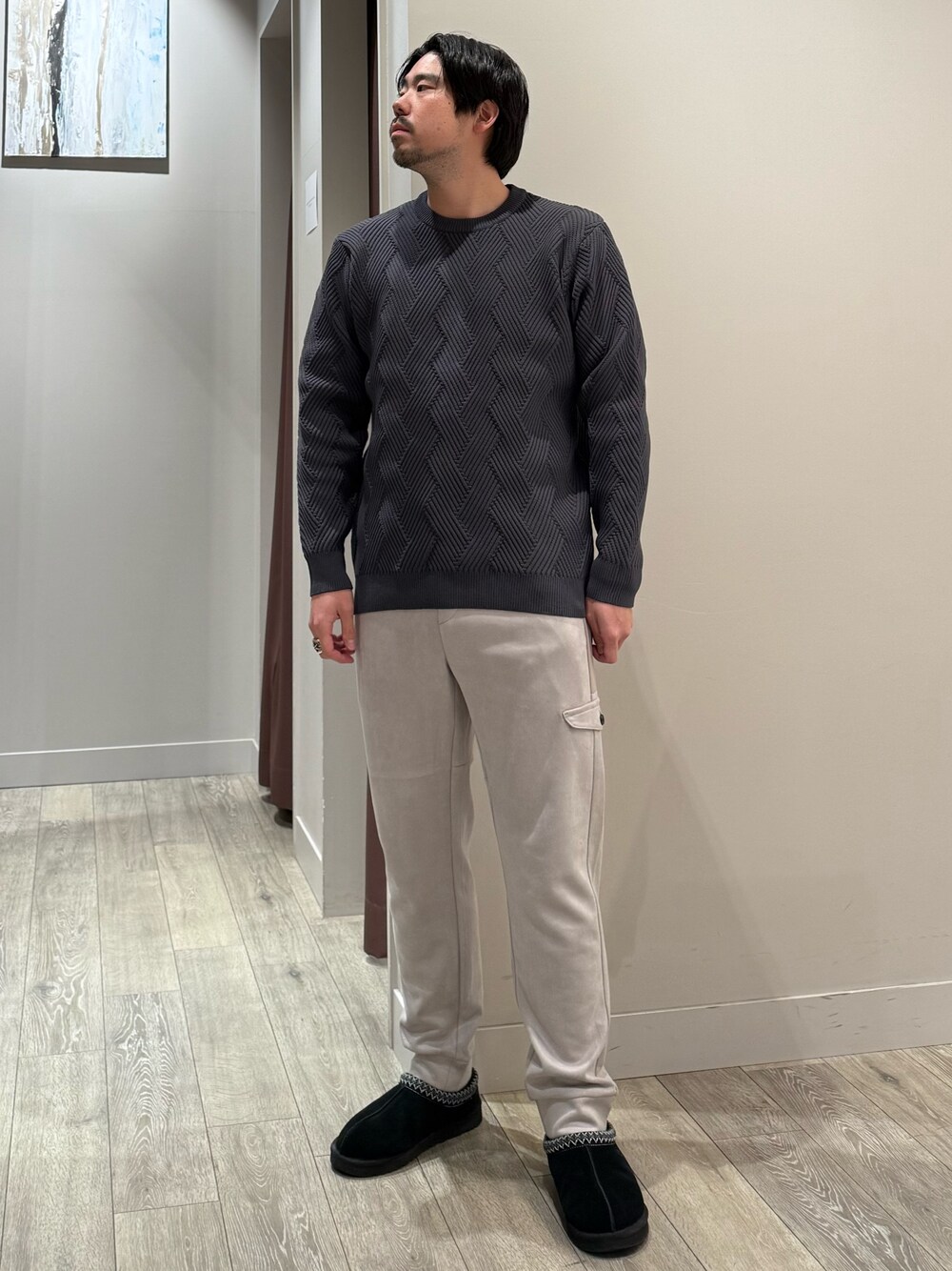 ao(アバハウス 佐野プレミアムアウトレット店(MEN'S))のニット/セーター「【ジオメトリック柄 / 軽量】プルオーバーニット」を使ったコーディネート