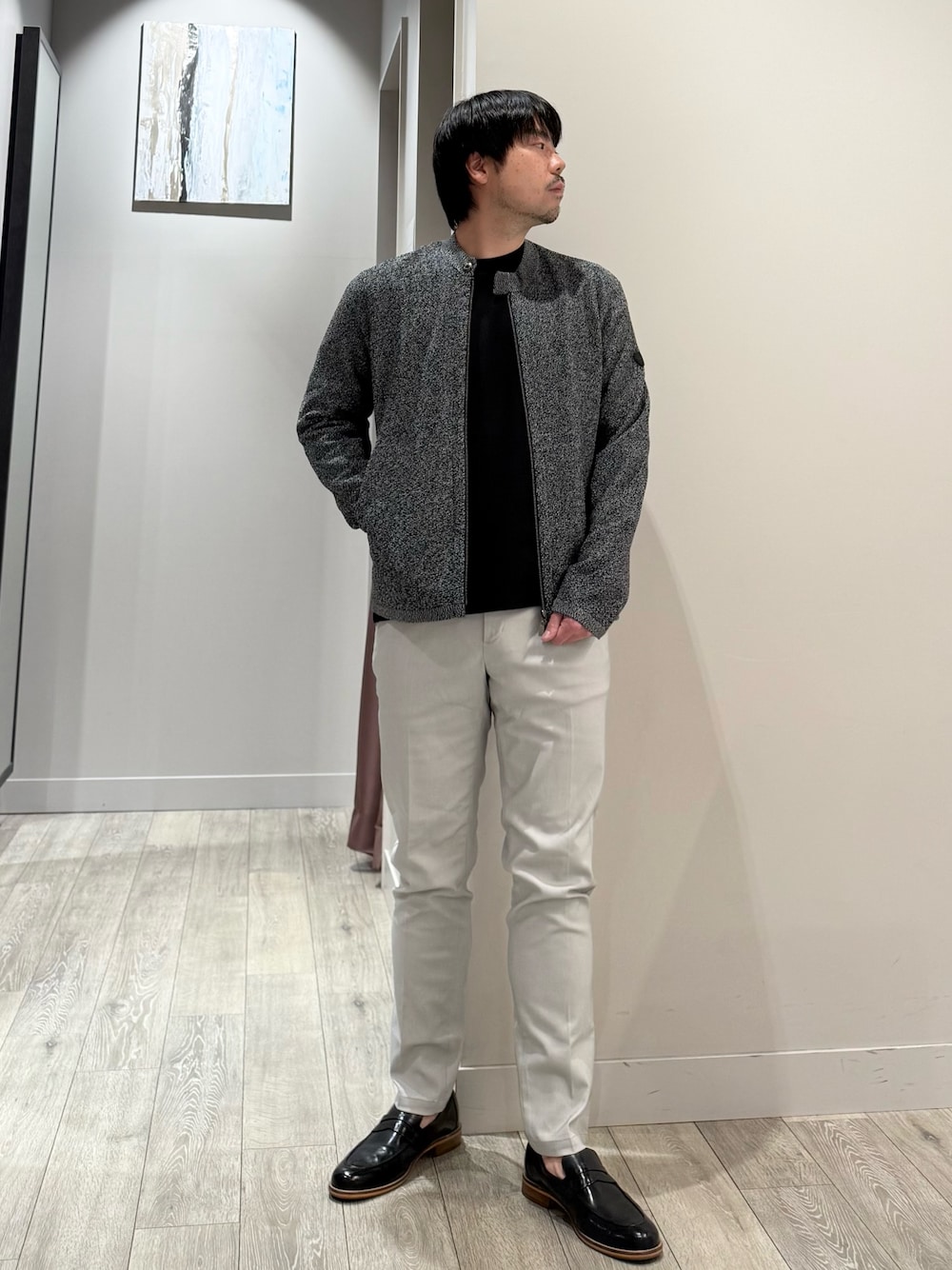 ao(アバハウス 佐野プレミアムアウトレット店(MEN'S))のライダースジャケット「ハイゲージニット ライダース」を使ったコーディネート